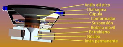 El diafragma es el elemento que radia directamente al aire. Son los más comunes al ser más sencillos que los de radiación indirecta.