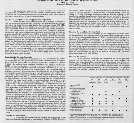 (ver cuadro: métodos de prueba de cables apantallados), por lo que las
